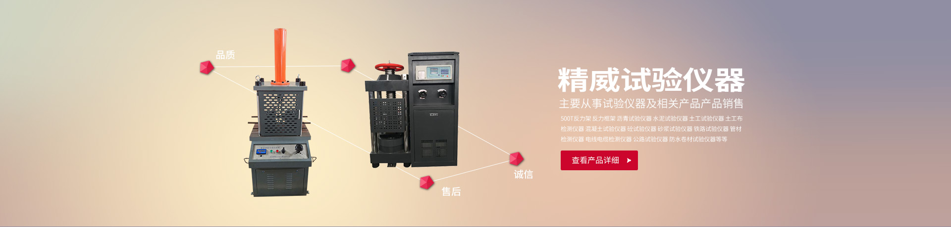 河北精威試驗儀器有限公司所成立于2007年,是位于河北省石家莊試驗儀器重點(diǎn)企業(yè),主要從事試驗儀器及相關(guān)產(chǎn)品產(chǎn)品銷售。500T反力架反力框架瀝青試驗儀器水泥試驗儀器土工試驗儀器土工布檢測儀器混凝土試驗儀器砼試驗儀器砂漿試驗儀器鐵路試驗儀器管材檢測儀器電線電纜檢測儀器公路試驗儀器防水卷材試驗儀器無損檢測儀器鋼筋檢測儀器【更多】